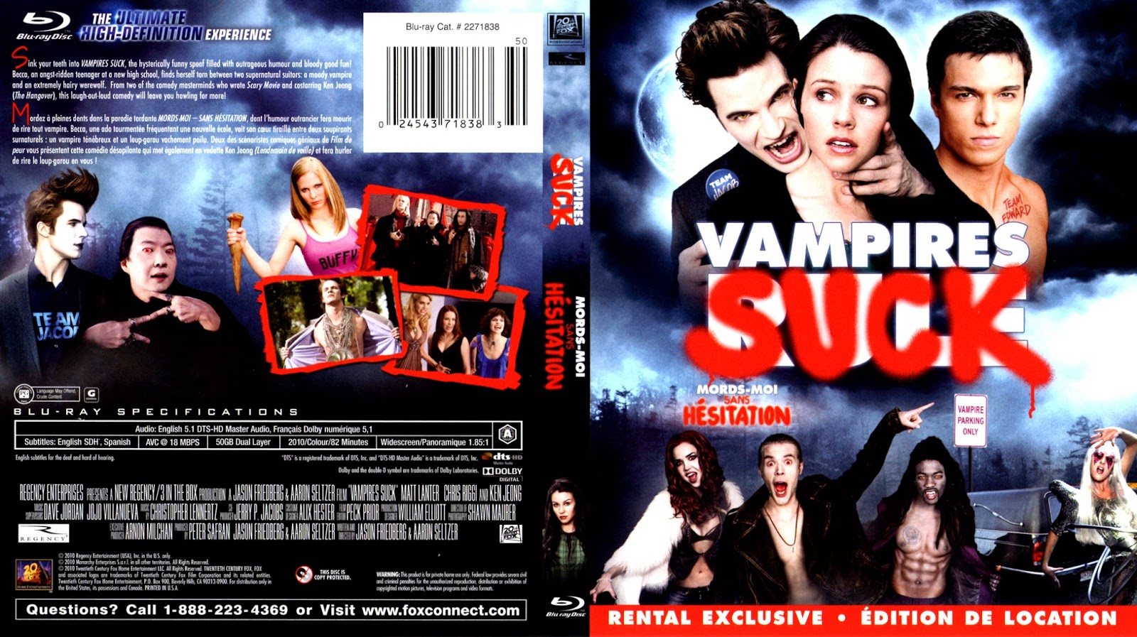 Becca, an anxious, nonvampire teen is torn between two boys. Before she can choose, Becca must get around her controlling father, who embarrasses Becca by treating her like a child. Get your hands on VAMPIRES SUCK just in time for the holidays, and laugh so loud at the clever, vampireromance spoof that you will wake the dead. This story of unconventional, teenage love is available on both Bluray and DVD with an extended unrated version, tons of deleted scenes, and a gag reel to keep you in stitches. Find great deals on eBay for vampire suck. A spoof of vampirethemed movies, where teenager Becca finds herself torn between two boys. As she and her friends wrestle with a number of different dramas, everything comes to a head at their Besides the classic Nosferatu, Interview with the Vampire, Salem's Lot, The Lost Boys and Let the Right One In (Swedish original), Suck is another great vampire flick, especially if you're a fan of rock and punk (Alice Cooper, Iggy Pop, Henry Rollins, and a couple of other rock legends have Cameos, Alice's and Iggy's being the longest). A spoof of vampirethemed movies, where teenager Becca finds herself torn between two boys. As she and her friends wrestle with a number of different dramas, everything comes to a head at their prom. Download Vampires Suck Indonesian Subtitle If any popculture phenomenon ever deserved a sendup, surely it's the Twilight world, with its overheated vampire love and shirtless teenage werewolves. Vampires Suck EXTENDED (2010): A spoof of vampirethemed movies, where teenager Becca finds herself torn between two boys. As she and her friends wrestle with a number of different dramas, everything comes to a head at their prom. This movie enter the category of Never Cry Werewolf, My Babysitter's a Vampire, Suck and even Decoy which use aliens, all of those funny light hearted vampirewerewolves movies. Even maybe Fright Night which is a bit more adult based, especially the remake. Incoming Searches: vampire suck movie download in Hindi Vampire suck movie hindi mp4 down vampires suck movie [ Becca, an anxious, nonvampire teen is torn between two boys. Before she can choose, Becca must get around her controlling father, who embarrasses Becca by The Film During the 19th century, a schoolteacher, Albert, sees his wife, Anna, leading a small girl to the castle of the villages ruler, Count is a vampire, and has been using Anna to bring the local children to his residence. After toying with the girl supernaturally, he feasts on her blood. Vampire power comes with the ultimate tradeoff of convenience, where demand placed on consumer electronics to be up and running at a moments notice is the big payoff. Sink your teeth into the Extended Bite Me Edition of the hysterically funny spoof, with more outrageous humor and bloody good fun! Becca, an angstridden teenager at a new high school, finds herself torn between two supernatural suitors: a moody vampire and an extremely hairy werewolf. Streaming Vampires Suck Bluray Comedy Becca, an anxious, nonvampire teen is torn between two boys. Before she can choose, Becca must get around her controlling father, who embarrasses Becca by Nonton Online Vampires Suck Gratis Cinemaxxi Film Bagus Bioskop Online Movie. ph permet de tlcharger des de films, sries, musique, logiciels et jeux. Accs direct sans inscription et sans ratio. Vampires Suck seems less horrifying than its four predecessors, but it remains consistently, thoroughly terrible. The Bluray comes with mediocre visuals, good audio and a minor set of supplements. The Bluray comes with mediocre visuals, good audio and a minor set of supplements. Watch videoRose Hathaway is a Dhampir, half humanhalf vampire, a guardian of the Moroi, peaceful, mortal vampires living discreetly within our world. Her calling is to protect the Moroi from bloodthirsty, immortal Vampires, the Strigoi. A spoof of vampirethemed movies, where teenager Becca finds herself torn between two boys. As she and her friends wrestle with a number of different dramas, everything comes to a head at their prom. Watch videoDirected by Tommy Lee Wallace. With Jon Bon Jovi, Cristin de la Fuente, Natasha Gregson Wagner, Arly Jover. A vampire hunter and a priest fight a. Download Vampires Suck 2010 EXTENDED 1080p BluRay H264 AACRARBG or any other from Highres Movies category. Direct download via HTTP available as well. Starring a rock royalty cast including Iggy Pop (Iggy the Stooges), Alice Cooper, Henry Rollins and Moby, Suck is a rocknroll vampire comedyhorror about a down and out band, The Winners, who will do anything for a record deal. Their luck suddenly changes when Jennifer the bass player, disappears one night with a Vampire and emerges. A vampire sucks a character dry (her skin shrivels up). Another character has his arms, legs, and head ripped off. Characters beat each other up with fists, feet, knives, shovels, baseball bats, and whatever other weapons happen to be handy. Note: Citations are based on reference standards. However, formatting rules can vary widely between applications and fields of interest or study. The specific requirements or preferences of your reviewing publisher, classroom teacher, institution or organization should be applied. Buy Vampires Suck here at Zavvi Australia, the home of entertainment. Take advantage of great prices on Bluray, Pop! vampires suck 2010 1080p Free Search and Download Torrents at search engine. Download Music, TV Shows, Movies, Anime, Software and more. ) The Vampire is an innocent 50's horror grasping for an audience with genre conventions bending the vampirelegend all on a modest budget. Factory Bluray produces a fine presentation but the barebones status reserves it for fans solely keen on the film, genre and era. Rent Cirque du Freak: The Vampire's Assistant (2009) starring John C. Reilly and Ken Watanabe on DVD and Bluray. Although the sexuality is on the mild side (especially for a vampire tale), there are a few kisses and a brief glimps