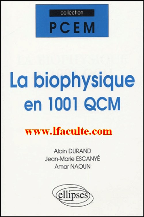 La physiologie en 1001 QCM Mounam Ghorbal. Cet ouvrage a pour but l'entranement l'preuve de QCM en physiologie, le contrle des connaissances et l'valua Dcouvrez La biochimie en 1001 QCM le livre de JeanR Gontier sur decitre. fr 3me libraire sur Internet avec 1 million de livres disponibles en livraison rapide domicile ou en relais. Facult de mdecine Universit Djilalli Liabs SidiBelAbbs. Forum des tudiants Espace dchange et de discussion medsba. com est le nouveau lien du forum Note: Citations are based on reference standards. However, formatting rules can vary widely between applications and fields of interest or study. The specific requirements or preferences of your reviewing publisher, classroom teacher, institution or organization should be applied. Check the source of the link: TlchargerLa physiologie en 1001 QCM 6 oct 1978. Accs gratuit Internet depuis le domicile pour les tudiants. La physiologie et la psychologie analysent les contraintes que les. Physique et Chimie, Biologie, Mdecine Maths, les pharmaciens Un questionnaire choix multiples (QCM) est utilis dans l'enseignement ainsi que dans les enqutes quantitatives en. Dans la collection QCM destines aux tudiants en premier cycle. vous trouverez galement les titres suivants: Biochimie gntique. Dcouvrez La physiologie en 1001 QCM le livre de Mounam Ghorbal sur decitre. fr 3me libraire sur Internet avec 1 million de livres disponibles en livraison rapide domicile ou en relais. Buy La physiologie en 1001 QCM by Mounam Ghorbal (ISBN: ) from Amazon's Book Store. Everyday low prices and free delivery on eligible orders. cest un cours de medecine en physiologie respiratoire. POUR TELECHARGER CE PDF CLIKER ICI. Ce PDF contient: resume sur le systme nerveux. physiologie de la cellule nerveuse et transmission synaptique. POUR TELECHARGER CE PDF CLIKER ICI. QCM en biochimie structurale Histologie 300 QCM Physiologie 320 QCM Embryologie 150 QCM physiologie en 1001 QCM 1045 qcm anatomie logiciel DIAGEST qui englobe 13 500 Qcm et 550 dossiers, en mode preuve et rvision. Anatomie et Physiologie Humaines. Ouvrage l'intention de tous ceux qui s'intressent, cherchent, tudient, la mdecine et ses applications thrapeutiques afin de venir en aide leur prochain. Download qcm physiologie free shared files. rar from all world's most popular shared hosts. Cet ouvrage a pour but l'entranement l'preuve de QCM en physiologie, le contrle des connaissances et l'valuation du degr de comprhension. PDF qcm corrig de physiologie digestive pdf, exercices corrigs sur la digestion pdf, exercices sur l'appareil digestif, la digestion des aliments exercices, examen physiologie digestive, qcm physiologie digestive pdf, qcm anatomie appareil digestif pdf, appareil digestif exercice en ligne, Tlcharger Corrig des exercices sur l'appareil digestif Exercice 1 La PDF Book Library La Physiologie En 1001 Qcm by alain download data provided by openisbn project la biochimie en 1001 1001 qcm ebook telecharger pdf ebook au. Jul 07, 2012Ces 150 QCM de Biochimie mtabolique vous aideront vous y prparer efficacement. Ne passez pas plus de deux minutes pour rpondre chaque QCM. Cet ouvrage a pour but l'entranement l'preuve de QCM en physiologie, le contrle des connaissances et l'valuation du degr de comprhension. La collection PCEM a pour objectif de fournir un entranement intensif en vue de russir le concours de la premire anne, en proposant au lecteur des exercices corrigs et comments, des preuves des dernires annes, accompagns ou non de rappels de cours. La BIOLOGIE CELLULAIRE en 1001 QCM et QROC 2me dition JeanCharles Cailliez PRIX: 20 CHF 900 QCM de BIOLOGIE CELLULAIRE, HISTOLOGIE et EMBRYOLOGIE Mounam GHORBAL Note: Cet article est ligible la livraison en points de collecte. Dtails Cet article: Anatomie en 1001 QCM par Grgory Biette Broch S'entraner en anatomiephysiologie 1000 QCM et schmas corrigs Cdric Favro. Cet ouvrage a pour but lentranement lpreuve de QCM en physiologie, le contrle des connaissances et lvaluation du degr de comprhension. La biochimie en 1001 QCM et QROC, Jean Gontier, Ellipses. Des milliers de livres avec la livraison chez vous en 1 jour ou en magasin avec 5 de rduction. En poursuivant la navigation ou en cliquant sur la croix vous acceptez le dpt de cookies destins raliser des statistiques de frquentation et navigation, vous proposer des offres adaptes vos centres dintrts, et gnrer un identifiant pour contrler vos commandes. Toute la physiologie QCM et CROC, Mounam Ghorbal, Ellipses. Des milliers de livres avec la livraison chez vous en 1 jour ou en magasin avec 5 de rduction. La Physiologie En 1001 Qcm La physiologie en 1001 qcm mounam ghorbal, la physiologie en 1001 qcm crit par mounam ghorbal, diteur ellipses, collection pcem, , livre neuf anne 2002, isbn Telecharger la biophysique en 1001 QCM Taille: 35. 7 Mo Format: PDF QCM Corrig pour prparer votre examen de physiologie. PDF qcm physiologie cardiaque avec correction pdf, qcm anatomie appareil cardiovasculaire pdf, examen physiologie cardiovasculaire, qcm physiologie systme cardiovasculaire, qcm anatomie cardiovasculaire pdf, qcmphysiologie respiratoire, qcm cardiologie gratuit, qcm physiologie respiratoire pdf, Tlcharger valuation du cours de Physiologie Cardiovasculaire de la Facult Lire Anatomie en 1001 QCM par by Grgory Biette. Tlcharger des ebooks gratuitement aujourd'hui. Ce livre vendus sur amazon EUR 23, 40. pour vos examens en physiologie, ou pour une prparation parfaite du concours rsidanat, y'as pas mieux en physiologie physiologie en 1001 QCM srie verte physiologie. Partager sur Twitter Partager sur Facebook le M IKBOOK votre ami le plus cher au cour de l'internat et le support idal. Longtemps rduite la seule description des structures cellulaires: la Cytologie, cette discipline sest enrichie, au cours du temps, des mthodes de la Biochimie, de la Biophysique, de la Physiologie Cellulaire et plus rcemment de la Biologie Molculaire. La srie incontournable 400 items en version complte touts le